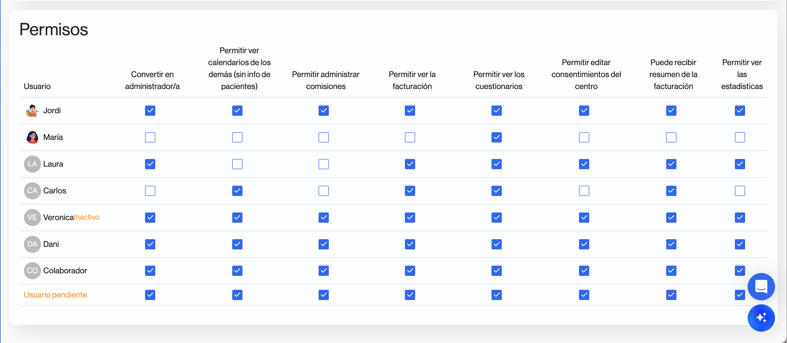 El administrador del centro siempre podrá ver la agenda de todos los colaboradores, independientemente de este permiso.