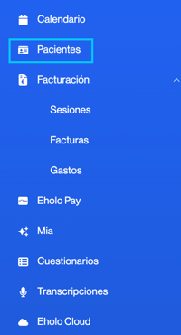 1. Accede al menú lateral de Eholo y entra en el apartado Pacientes.