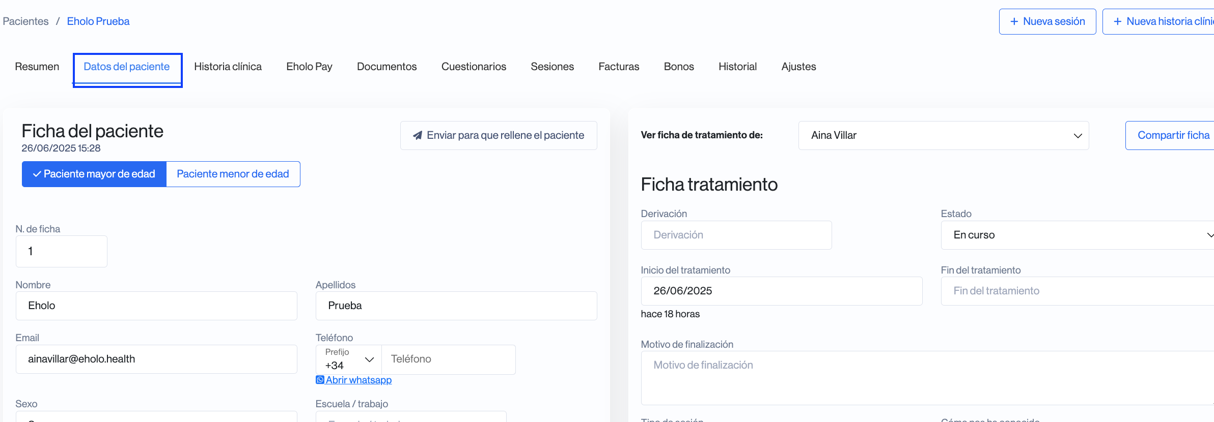 3. Entra en la Ficha del Paciente y dirígete a "Datos del paciente".